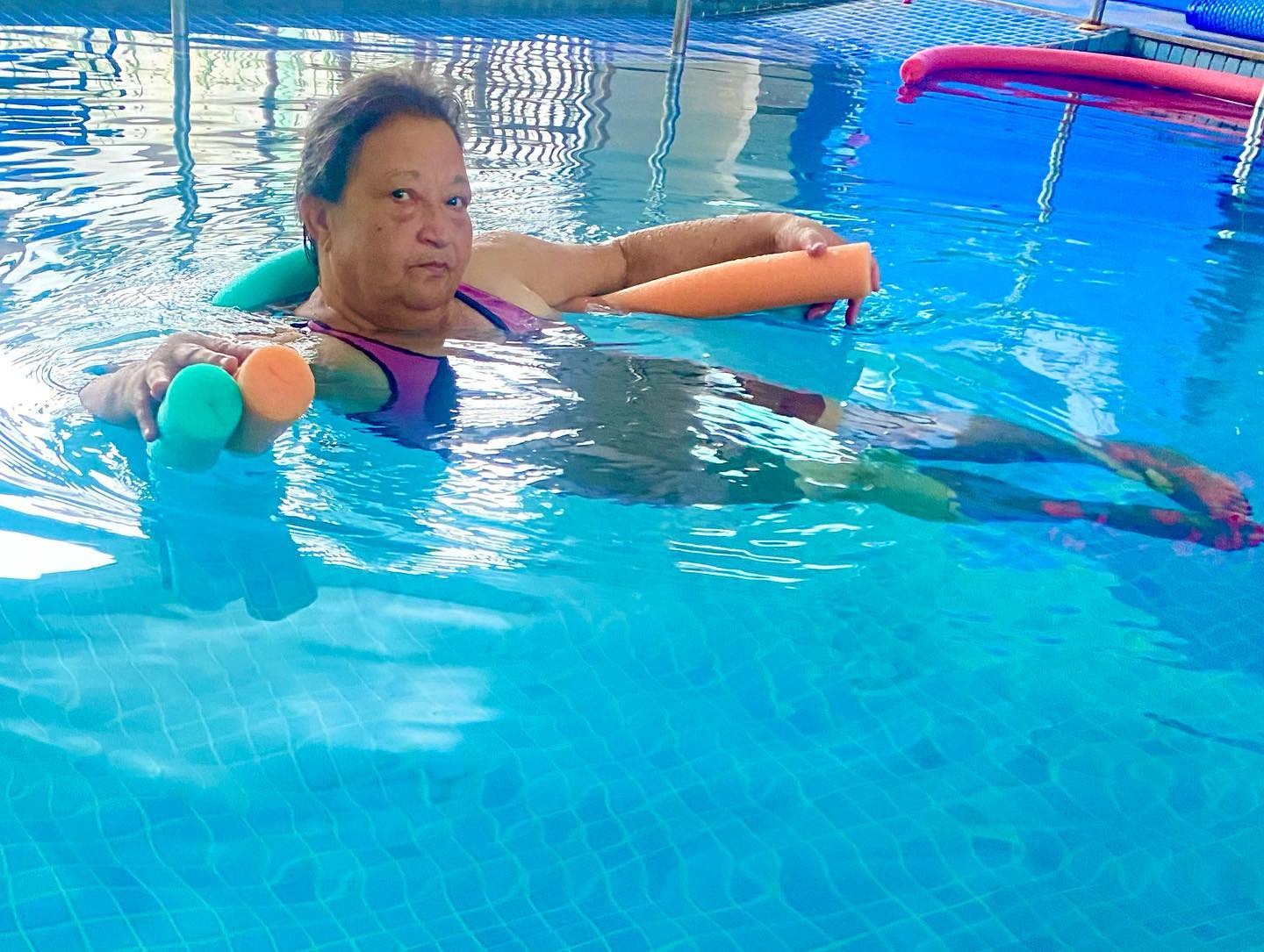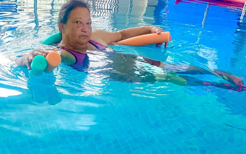 A assistida Jeane Maria da Silva conta que a hidroterapia a auxiliou na redução de dores, na melhora da mobilidade, e proporcionou mais bem-estar e qualidade de vida. “Essa atividade é muito importante. Já senti mudanças positivas e muita diferença em relação a quando eu não a praticava. Eu amo estar aqui e realizar o exercício na piscina”, ressalta.