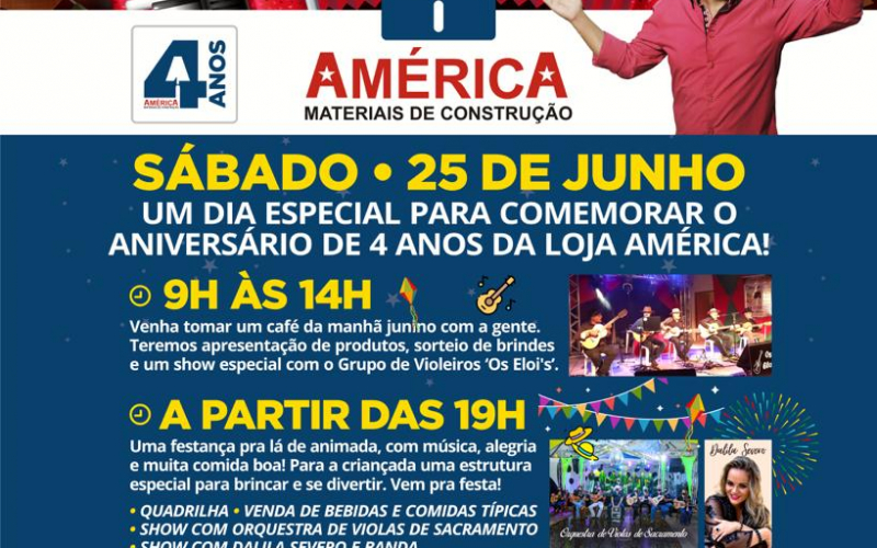 Festa é a comemoração dos quatro anos de aniversário da Loja América Materiais de Construção.